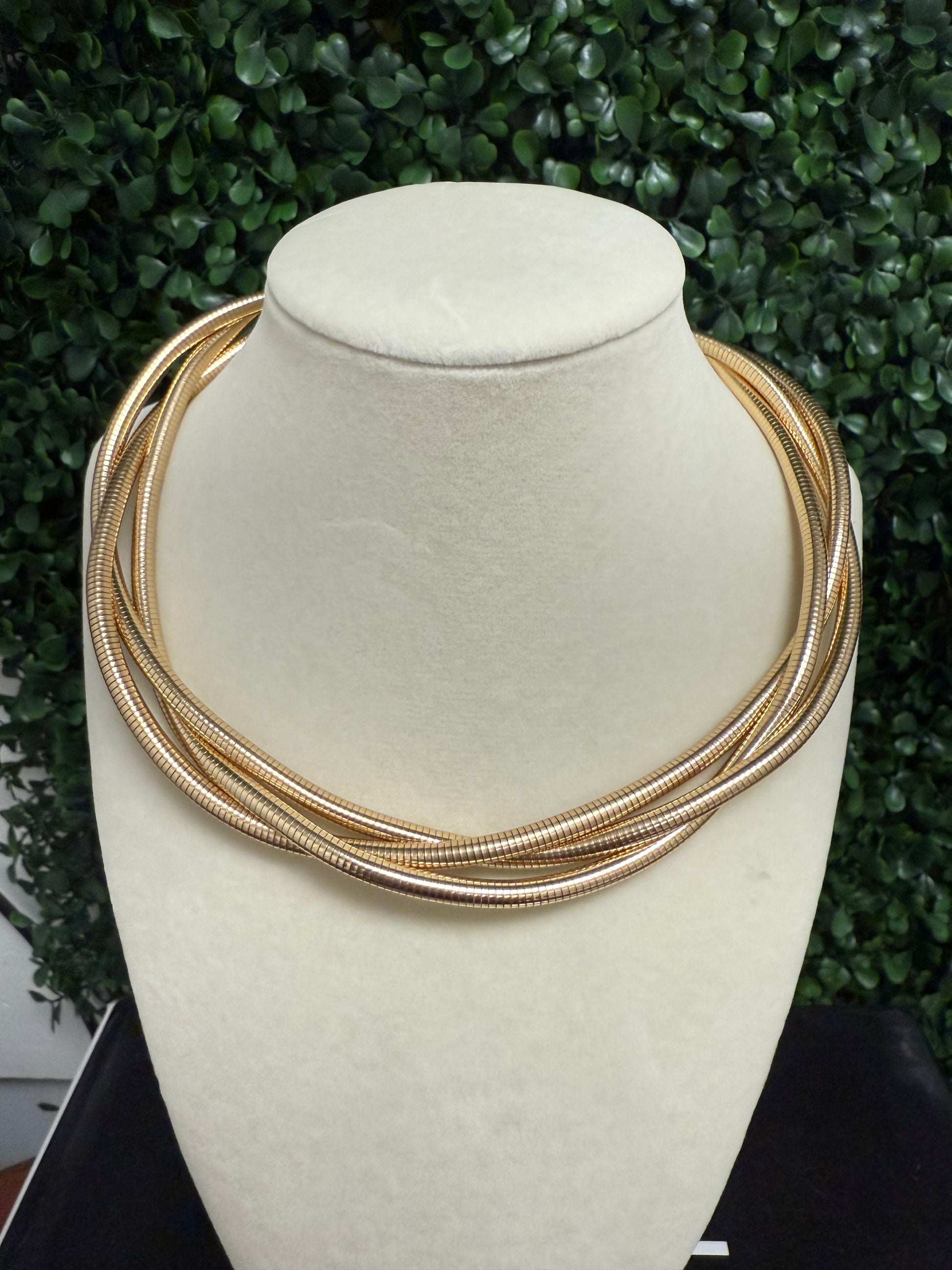 Gold 3 omega intertwined necklace.