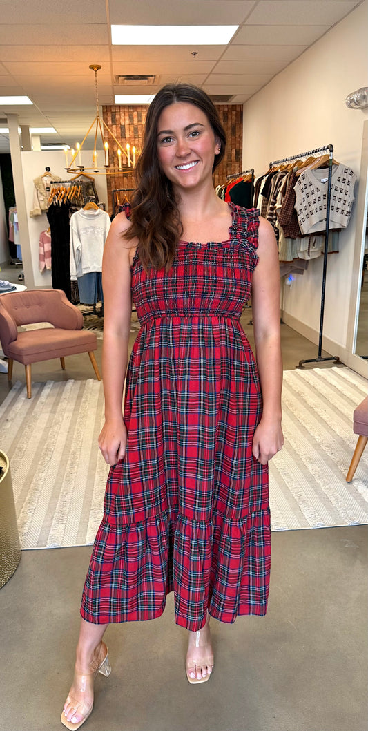 Sold outPlaid Smocked Midi Dress